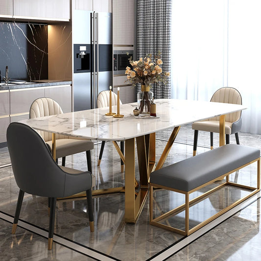 Light luxury marble dining table Nordic ins dining table chair combination rectangular household dining table
