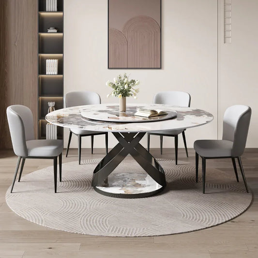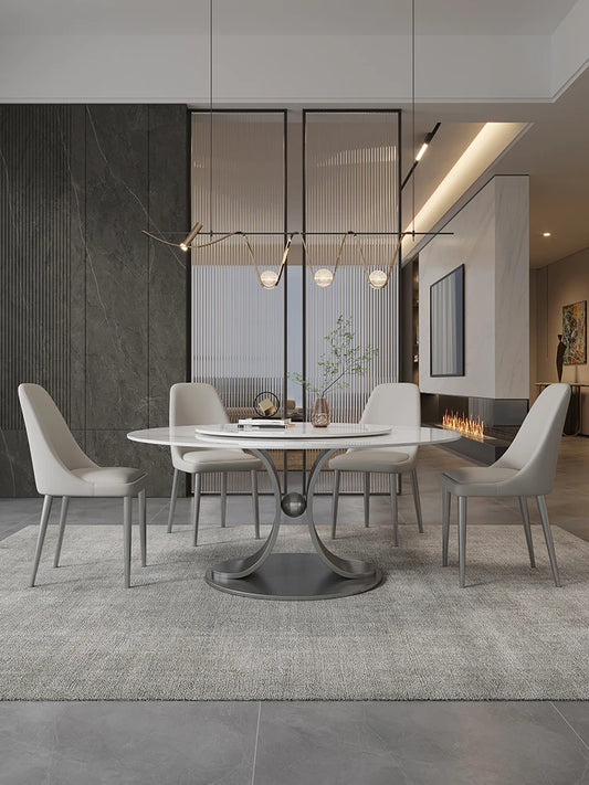 Italian rock plate round dining table with turntable light luxury modern simple household dining table chair combination