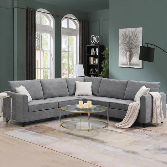 L Shape Couch Set with 3 Pillows,5 Seats Corner Sofa Set,Upholstered Sectional Sofa for Indoor Furniture Set-Grey