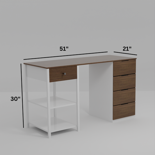 Lexus Urban Teak & White Colour Engineered Wood Study table
