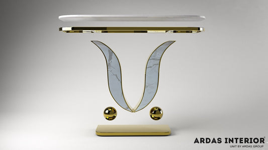 LOTUS GOLDEN CONSOLE WITH WHITE MARBLE