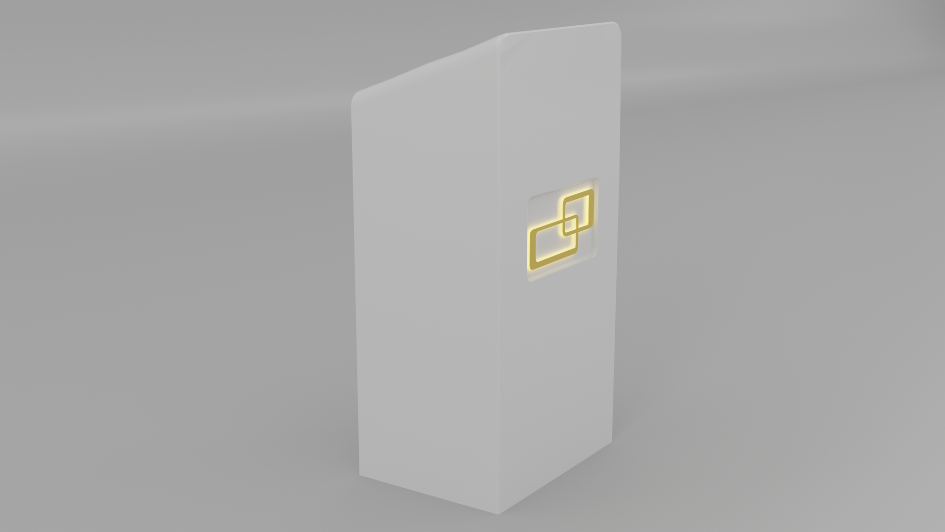 • Shape: It has a unique, geometric shape. The podium is a rectangular column with a slanted top surface. It appears to be slightly wider at the top than the base, creating a trapezoidal profile from the side.
